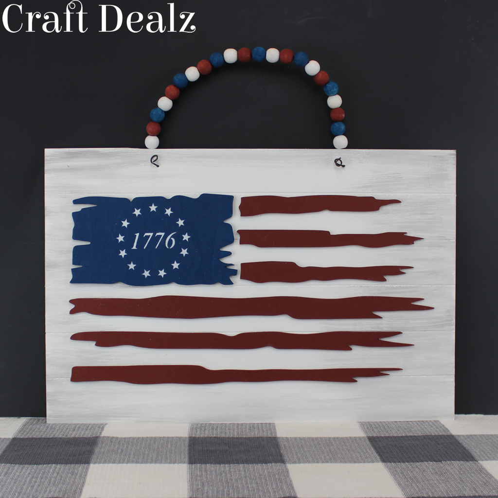 A tattered flag with a Betsy Ross circle of stars makes a great summer sign. This one has the stripes and corner piece laser cut.