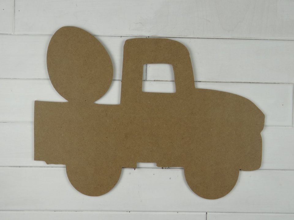 An Easter egg truck. Use the larger one for a door hanger and the smaller ones for wreaths or as attachments on the HOME signs.